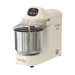 Profesjonalny mikser spiralny Massima M7 przeznaczony do ciast o wysokim uwodnieniu, odpowiedni zarówno do użytku domowego i profesjonalnego. Pojemność ciasta 7 kg (10 litrów), elektronicznie sterowana prędkość 90 do 280 obr./min, zegar cyfrowy.