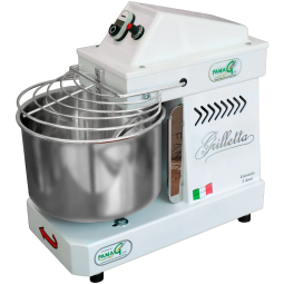 Mikser spiralny FAMAG IM 5/10V GRILLETTA to uniwersalna maszyna do wyrabiania różnych rodzajów ciasta. Dzięki regulowanej prędkości jest odpowiednia do ciast twardych lub miękkich takich jak chleb, pizza, ciastka, piada itp. i silnie nawodnionych, takich jak pizza z blaszki, Romana Pinsa, ciasta bezglutenowe oraz do ciast na opartych prefermentach.